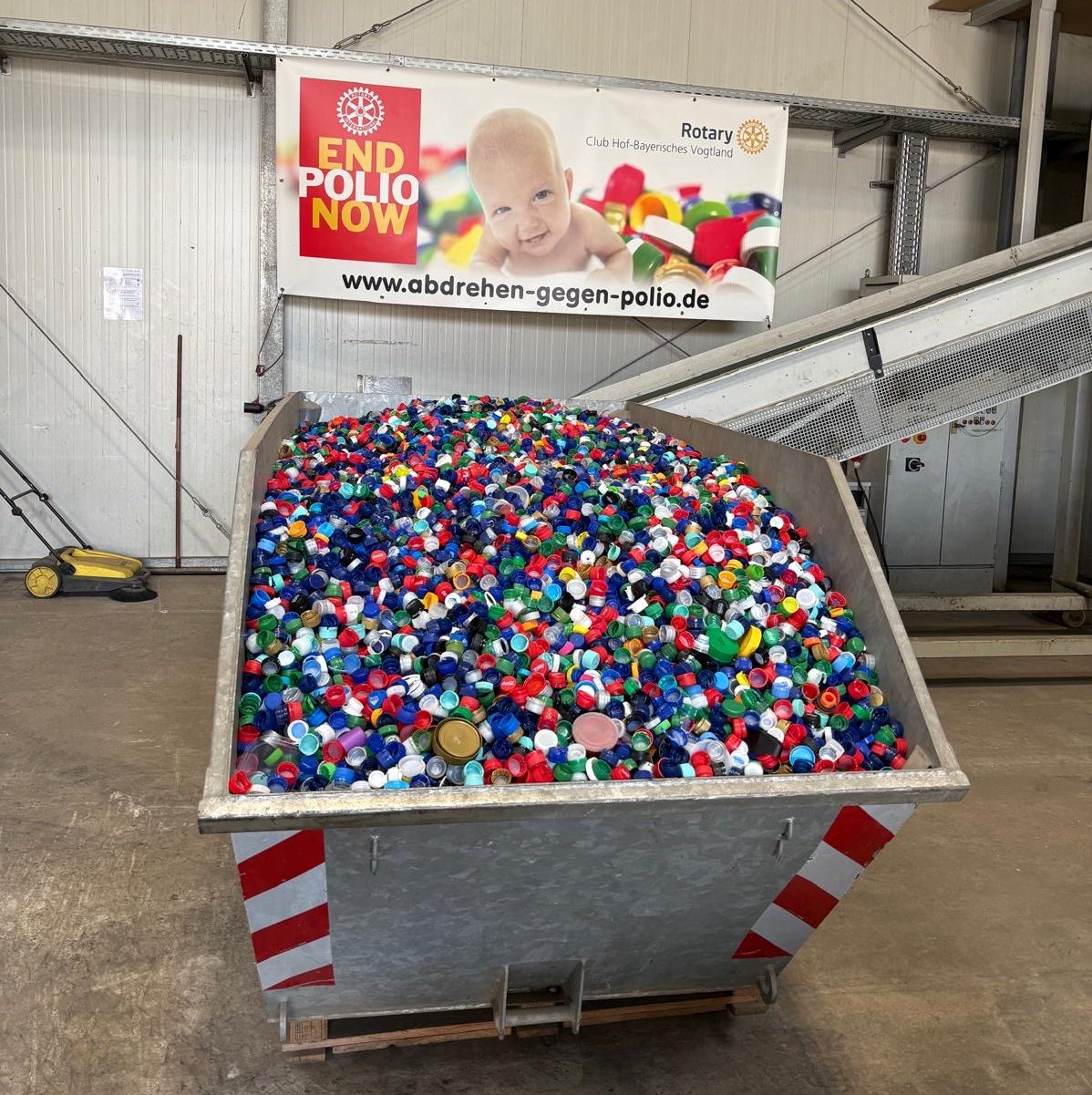 Der Rotary Club Hof-Bayerisches Vogtland hat die Aktion „abdrehen-gegen-polio“ initiiert, holt selbst die Deckel von den Sammelstellen in Stadt und Landkreis Hof und von Lagerstellen im benachbarten Vogtlandkreis ab und sorgt für die richtige Qualitätssicherung und Aufbereitung der Deckel zu reinem PE-/PP-Mahlgut, um ein hochwertiges Recycling und damit hohe Erlöse für unsere Aktion zu ermöglichen.